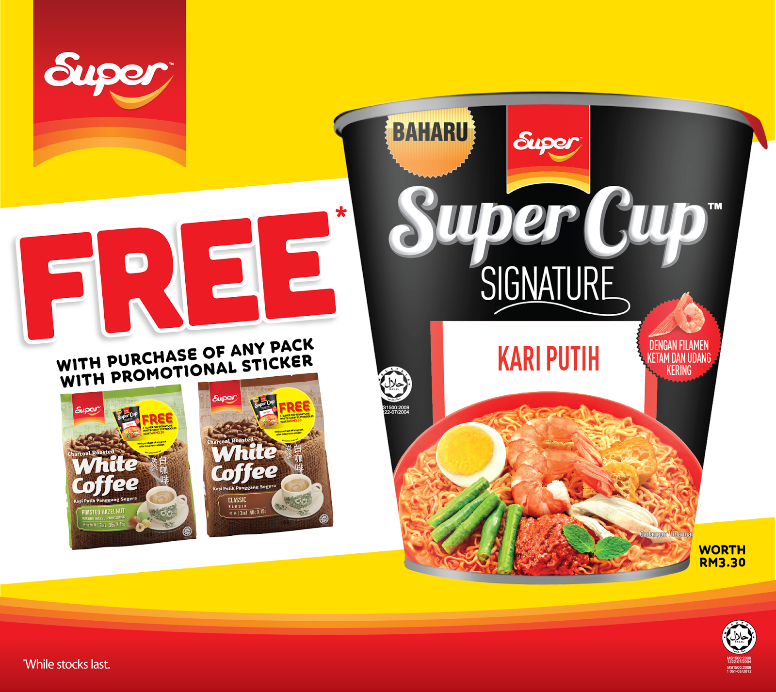 Another important product that is likely to hit shelves soon is the Super Cup Signature White Curry. This cup noodle is currently free with purchase of any pack of Super instant coffee with the promotional sticker. The normal price for the Signature white curry cup noodle is RM 3.30, which makes it even more expensive than the existing kimchi and black pepper crab variants.