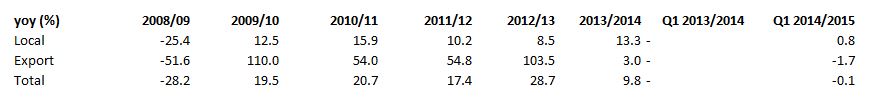 The good news for Power Root is raw material cost has not impacted the company as much as its competitor such as Singapore’s Super Group with the share of raw material to revenue at a healthy level of 42.6% in 2013/14, down from 44.6% a year ago. In Q1, 2014/15, raw material accounted for 42.2% of sales, up slightly from 42% a year ago.