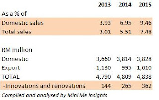 The revenue contribution from innovations and renovations is growing as a proportion of domestic sales, reaching 9.5% in 2015 from a mere 4% in 2013. This shows the innovation and renovations is a key growth driver.