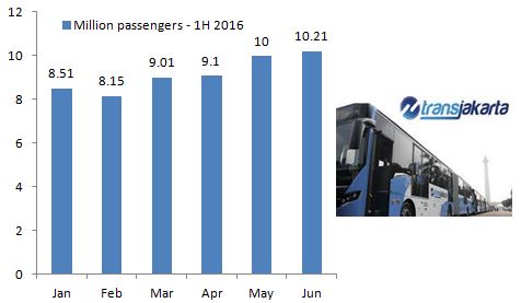 Transjakarta, operational since 2004, is the major bus rapid transit (BRT) system in Jakarta. The daily ridership on the Transjakarta network is around 340,000 commuters, according to PT Transjakarta director Budi Kaliwono. This translates into 55 million passengers for the first half of 2016.