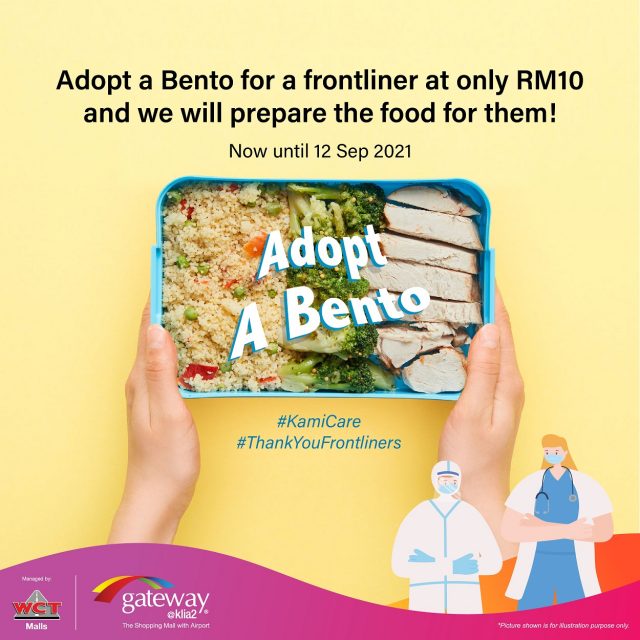 Adopt a Bento for a frontliner at only RM10 and gateway@klia2 will prepare the food for them.