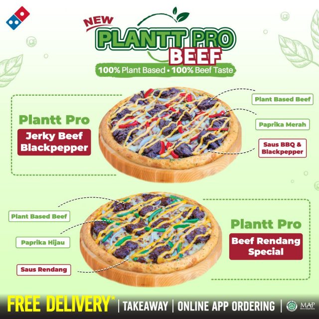 Domino’s Pizza in Indonesia is going plant-based with the launch of Plantt Pro Beef Rendang Special and Plantt Pro Jerky Beef Blackpepper. The Beef Rendang Special with rendang sauce is a good example of plant-based localisation. This rendang pizza is topped with green bellpepper, cheddar cheese sauce and plant-based beefless shreds.
