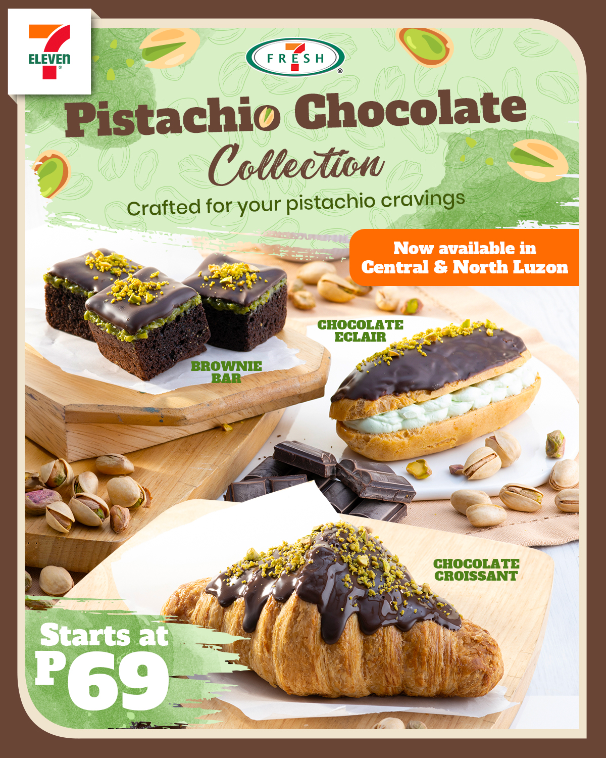 7-Eleven Philippines has unveiled its new 7-Fresh Pistachio Chocolate Collection, riding the wave of the global pistachio craze. This indulgent lineup includes Brownie Bars, Eclairs, and Croissants, all infused with rich pistachio flavour, starting at just PHP 69. The collection is now available at 7-Eleven stores across Central and North Luzon, giving pistachio lovers a delicious reason to drop by.