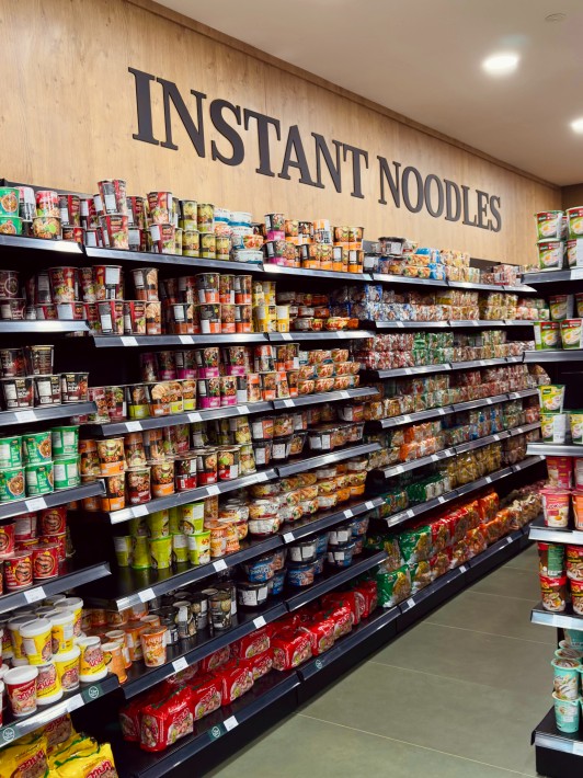 Debuting at the new Jurong Point outlet, Singapore’s first Thai Instant Noodle Wall brings a playful twist to grocery shopping. Inspired by the buzz of Thailand’s street culture, the wall lets customers pick their favourite instant noodles and instant cup porridge, mix and match flavours, and enjoy them on the spot right after.