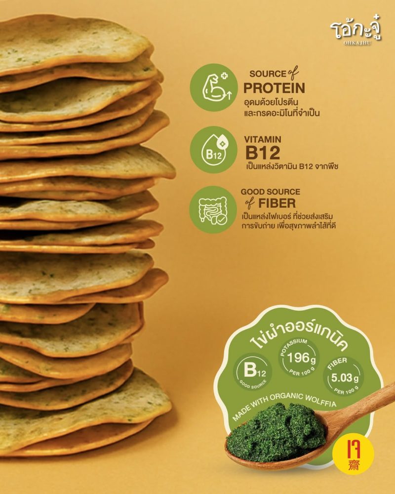 Ohkajhu Organic Farm, a farm-to-table restaurant and organic farming brand based in Chiang Mai, Thailand, has released an innovative healthy snack that combines tempeh with wollfia (duckweed).