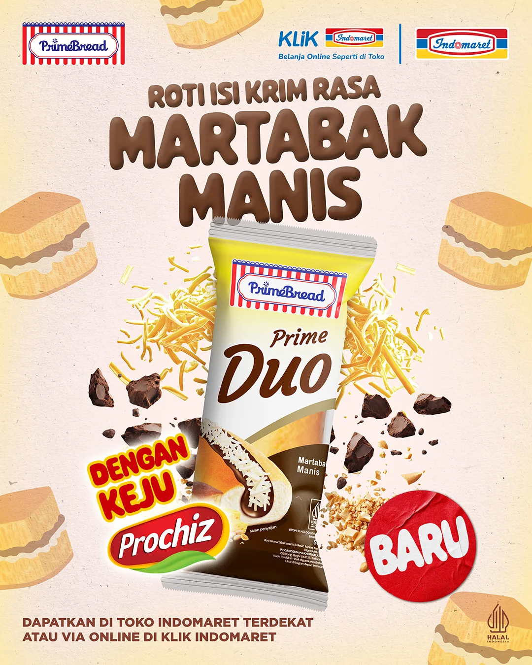 Prime Bread has collaborated with Prochiz to launch Sweet Martabak-Flavoured Cream-Filled Bread under the Prime Duo range. The product includes the delightful fusion of Prochiz cheese’ savoury richness and the soft texture of Prime Bread, creating a fresh twist on the legendary Indonesian street snack, sweet martabak.
