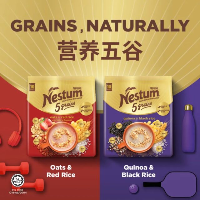 Nestlé Malaysia has launched a new addition to its hot cereal range: Nestum 5 Grains. This latest offering blends the familiar taste and aroma of Nestum with a wholesome mix of grains, available in two variants—Quinoa & Black Rice and Oats & Red Rice. Both options are rich in protein and iron and provide a good source of dietary fibre.