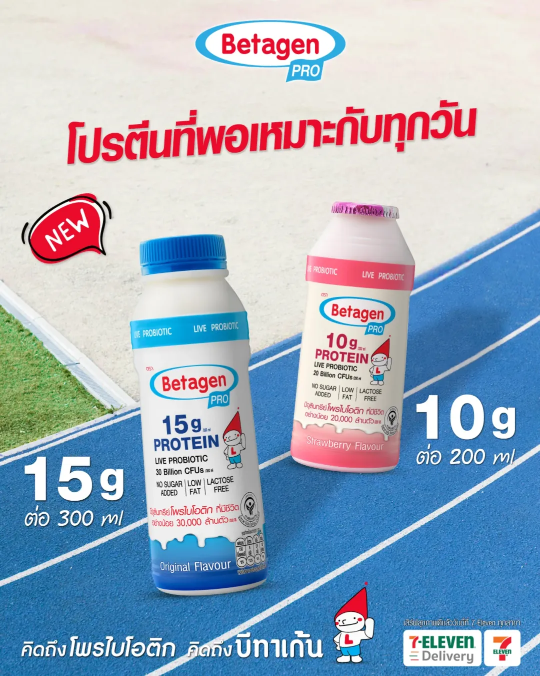 Betagen, Thailand’s well-known cultured milk brand, is tapping into the high-protein trend with the launch of its newest innovation Betagen Pro. This enhanced formula delivers 15g of protein and 30 billion CFUs of live probiotics per 300ml serving, while the 200ml variant offers 10g of protein and 20 billion CFUs, making it a convenient option for daily gut and muscle support.