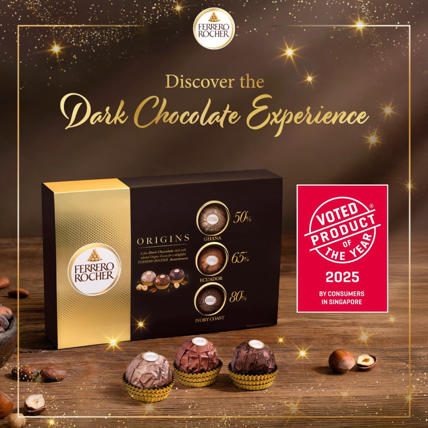 Ferrero Rocher Origins celebrates a proud milestone with its T15 pack, recently awarded Product of the Year 2025 in Singapore and Malaysia. Building on this success, the brand expands its premium dark chocolate assortment with the new T2 (65% Ecuador and 80% Ivory Coast) and T24 formats — offering refined options perfect for both gifting and personal indulgence. These new pack sizes offer greater versatility for every occasion, further elevating the art of premium chocolate gifting.