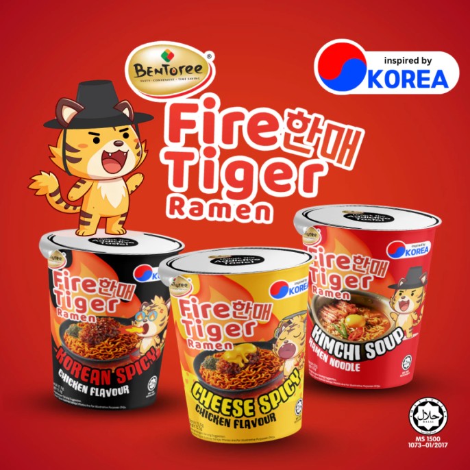 Malaysia-based Bentoree has unveiled its latest product innovation: Fire Tiger Ramen, now available in two bold and flavorful varieties— Korean Spicy Chicken Flavour and Kimchi Soup Ramen Noodle. These Korean-inspired instant noodles come in a convenient cup format, making them ideal for quick meals or on-the-go snacking. Bentoree Fire Tiger Ramen is certified halal by JAKIM.