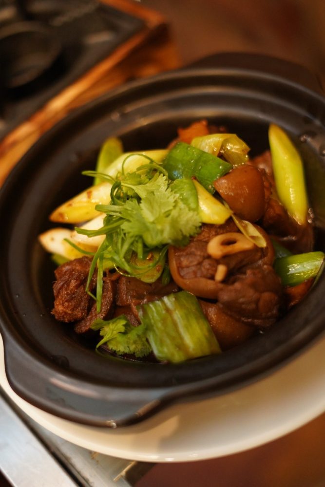 For meat lovers, the Stir-fried Lamb with Ginger and Premium Soya Sauce presents a robust and earthy flavor, complemented by the Baked Sand Whiting Fish with Szechuan Pepper, which adds a touch of numbing spice to delicate seafood. The Steamed Squid with Pickled Yellow Chili and Chinese Seaweed brings a refreshing tang, while the Poached Clams in Chicken Broth offer a light yet flavorful interlude. Traditional favorites like the Wok-seared Baby Oyster Chinese Omelette and the “Minnan Style” Steamed Glutinous Rice with Roe Crab in Lotus Leaf showcase the region’s culinary heritage, culminating in the “Heng Hwa” Wok-fried Bee Hoon with Assorted Seafood, a beloved noodle dish that ties the experience together.
