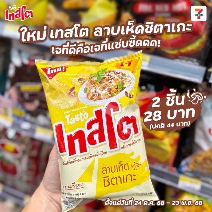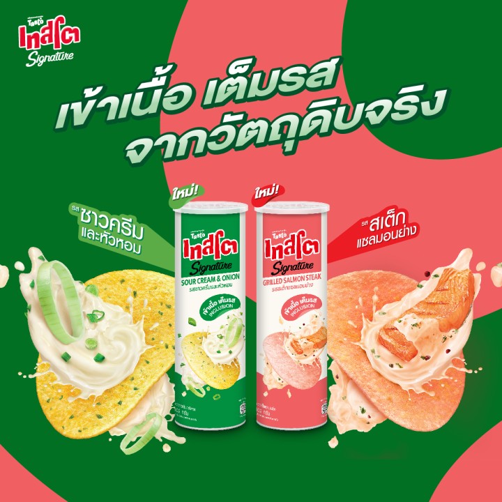 Tasto previously introduced flat-cut potato chips in a shiitake larb flavour, launched to coincide with the Vegetarian Festival. In addition, two canister-format varieties were released under the Tasto Signature label, featuring Sour Cream & Onion and Grilled Salmon Steak flavours.