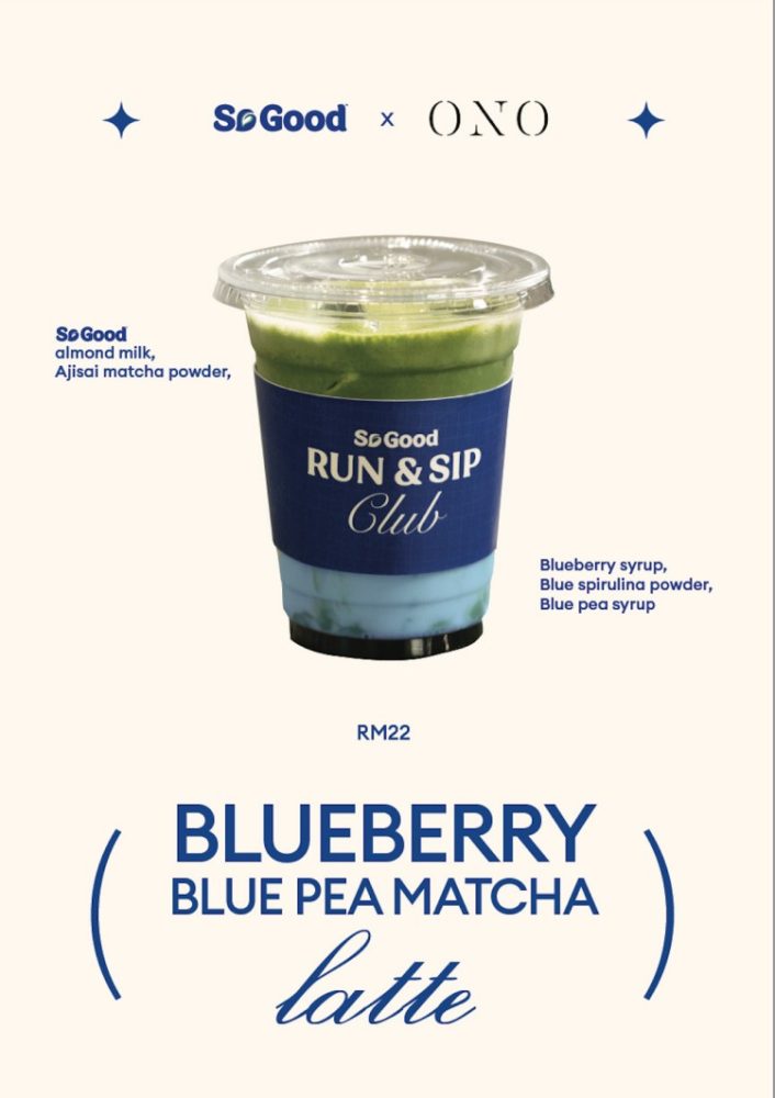 The collaboration with ONO Specialty Coffee & Matcha marks the first stop of the Run & Sip Club by So Good. Launching 7 November 2025, the So Good x ONO menu will be available for one month only until 7 December 2025, featuring limited-edition creations made with So Good Almond Barista — the Blueberry Blue Pea Matcha Latte and Matcha Tiramisu.