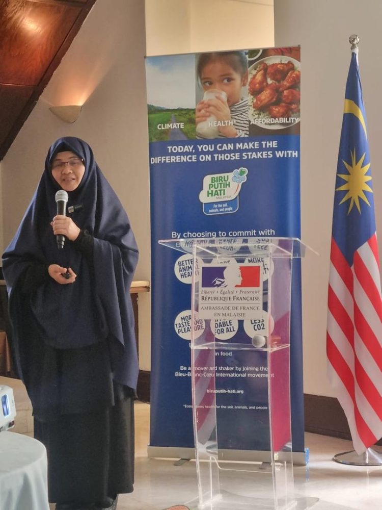 Mr. Jérémie Renaud, International Development Manager of Bleu-Blanc-Cœur, introduced Biru-Putih-Hati, the Malaysian chapter of the global One Health initiative active in 18 countries. Founded in France 25 years ago, Bleu-Blanc-Cœur connects farmers, scientists, and consumers to deliver food that improves human health, animal welfare, and environmental impact.