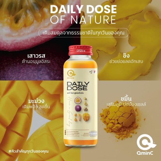 QminC has introduced its newest functional beverage, Daily Dose, in Thailand — a drink that packs four natural benefits into a single bottle. Crafted from turmeric and ginger blended with 100% real fruit juice, Daily Dose offers: