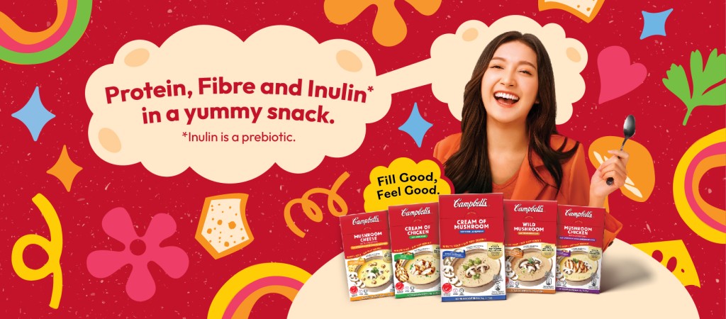 Campbell’s Soup Malaysia has refreshed its instant soup range with a new look, updated recipe and revamped messaging. Marketed as a quick and wholesome snack, the product carries the tagline “Fill Good, Feel Good” and is powered by a trio of functional ingredients — protein, fibre and inulin. Together, they help keep you satisfied, boost energy and promote gut health.