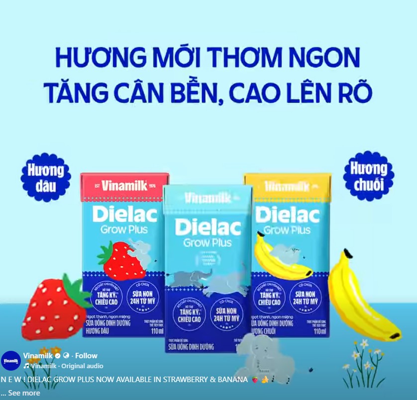 Vinamilk Dielac Grow Plus in ready-to-drink format is now available in two new flavours: banana and strawberry. Dielac Grow Plus contains nutrients to support height and stature thanks to 37 nutrients combined with whey protein.