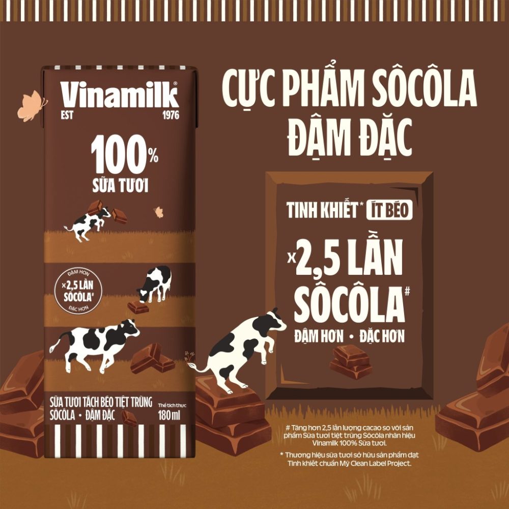 The Vietnamese dairy player has also upgraded its 100% fresh chocolate milk to be richer, thicker and more indulgent. The new formulation offers 2.5 times more chocolate and 21% less fat compared with Vinamilk 100% Fresh Sterilised Chocolate Milk.