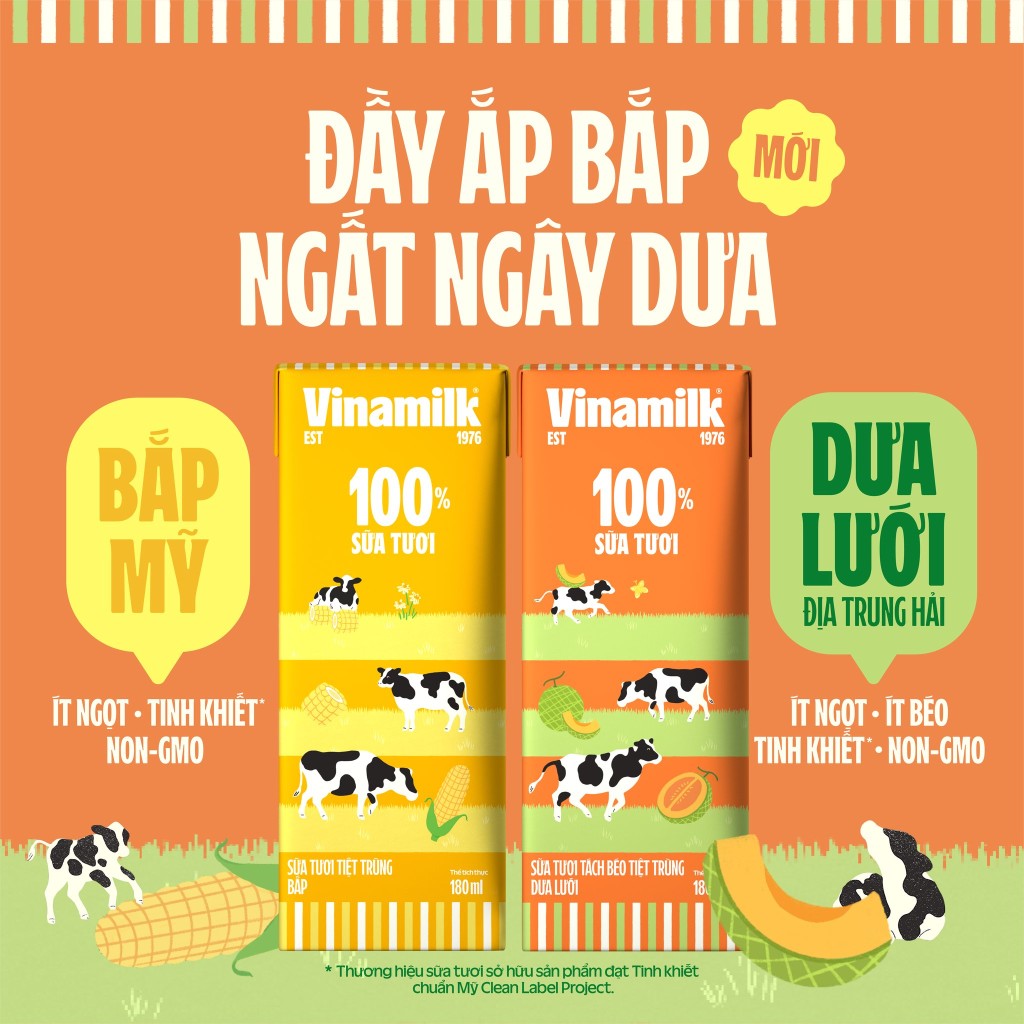 Vinamilk 100% Fresh Milk has introduced two new varieties — Mediterranean Melon and Sweet American Corn — offering UHT fresh milk with irresistible taste.