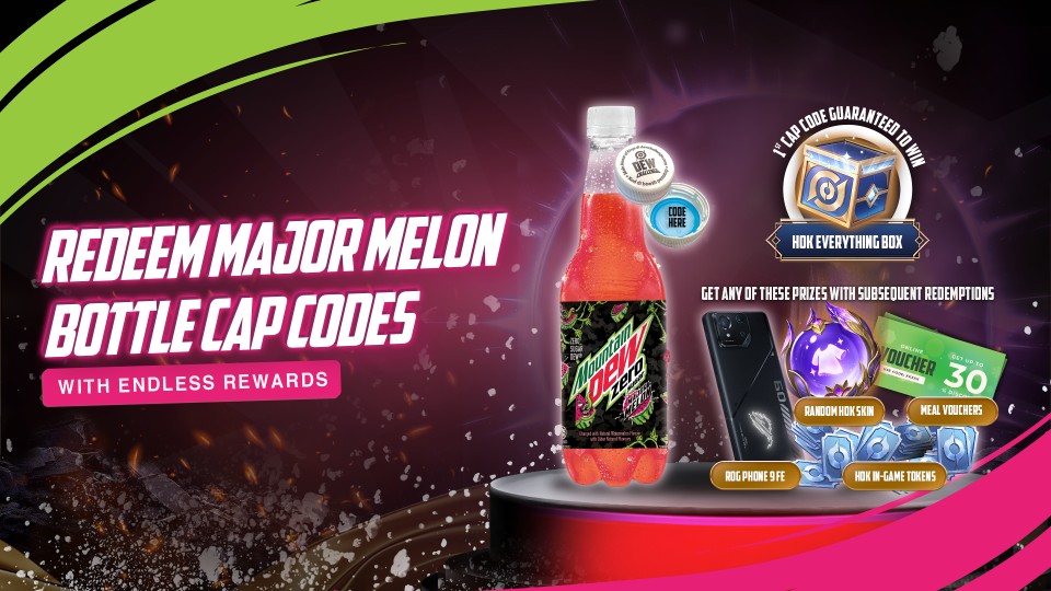 As part of the Mountain Dew Dew Challenge Season 2, all Major Melon bottle caps will carry a unique redemption code inside. Fans can redeem the code at dewchallenge.com to win prizes, with a guaranteed Honor of Kings Everything Box on first redemption. Subsequent redemptions unlock chances to win additional rewards, including an ASUS ROG phone, with more in-game collaborations rolling out within the Honor of Kings app throughout the season.