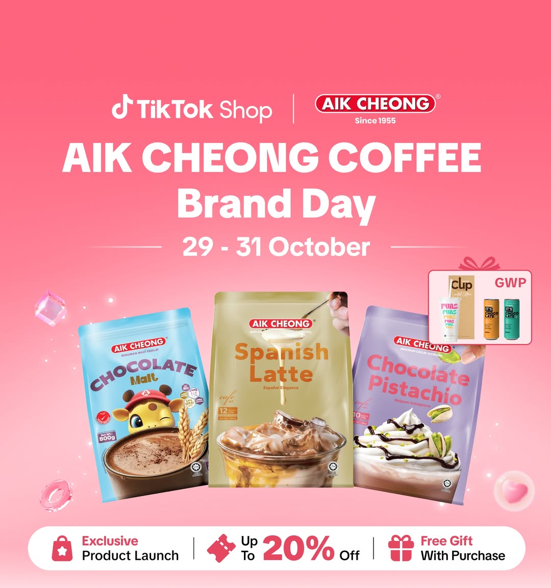 Aik Cheong, a Malaysian coffee and beverage company best known for its instant coffee, tea, and lifestyle drinks, introduced its latest Chocolate Pistachio powdered drink along with the new Spanish Latte and Chocolate Malt in October 2025.