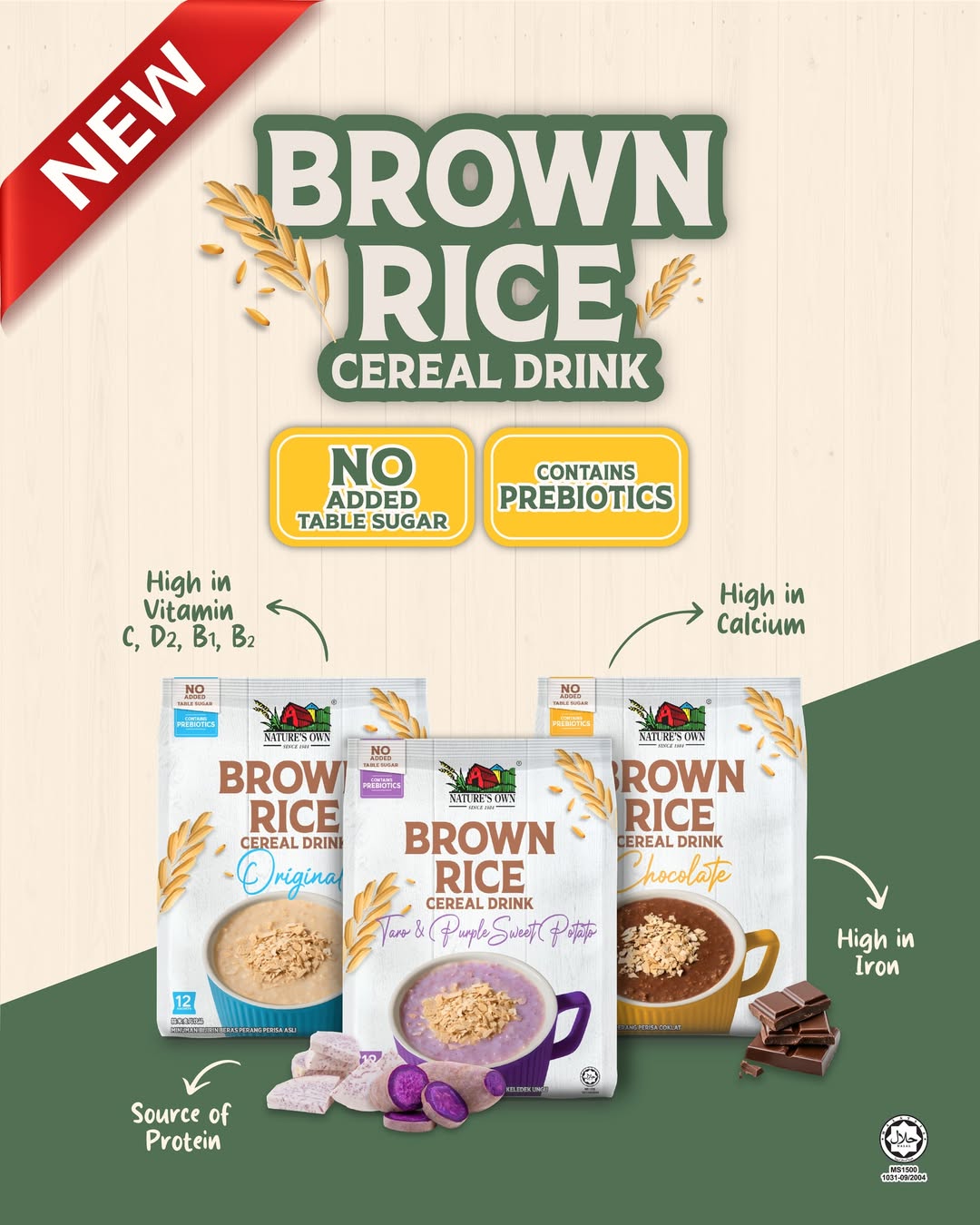 Nature’s Own Brown Rice Cereal Drink has officially arrived in Malaysia, offering consumers a wholesome and convenient way to enjoy nutrition in every sip. This instant brown rice cream drink is enriched with essential vitamins — including C, D2, B1, and B2 — along with calcium, iron, and a good source of protein, making it both nourishing and satisfying. Free from table sugar and enhanced with prebiotics, it offers a healthier choice for daily enjoyment.