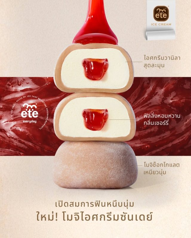 Thailand’s été Dairy has launched its new Mochi Ice Cream Sundae, characterized by a soft, chewy texture that enhances the enjoyment of each bite. The product combines smooth vanilla ice cream encased in a layer of chocolate mochi with a sweet cherry filling, creating a balanced flavor profile.This release represents one of the company’s entry into the mochi format.