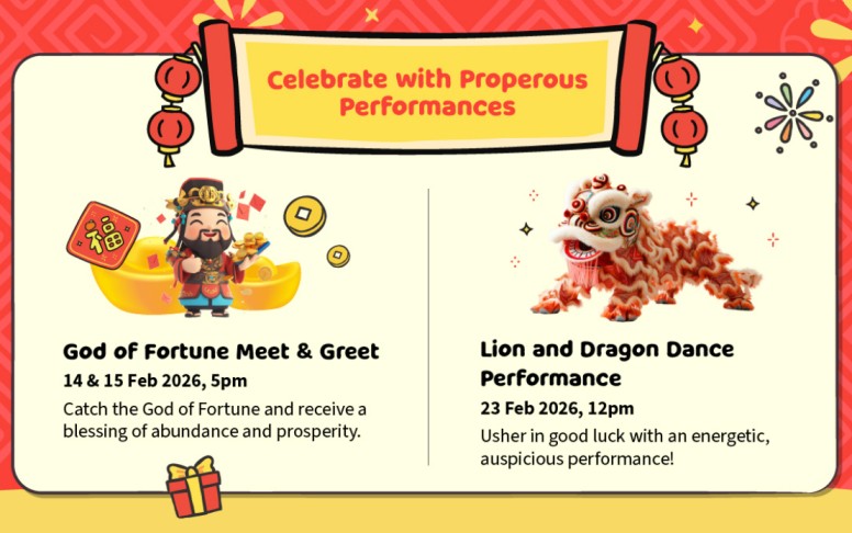 On 23 February, 12pm, catch the vibrant Lion and Dragon Dance performance at the Level 1 Atrium, where these iconic creatures come to life, spreading luck and festive cheer throughout the mall.