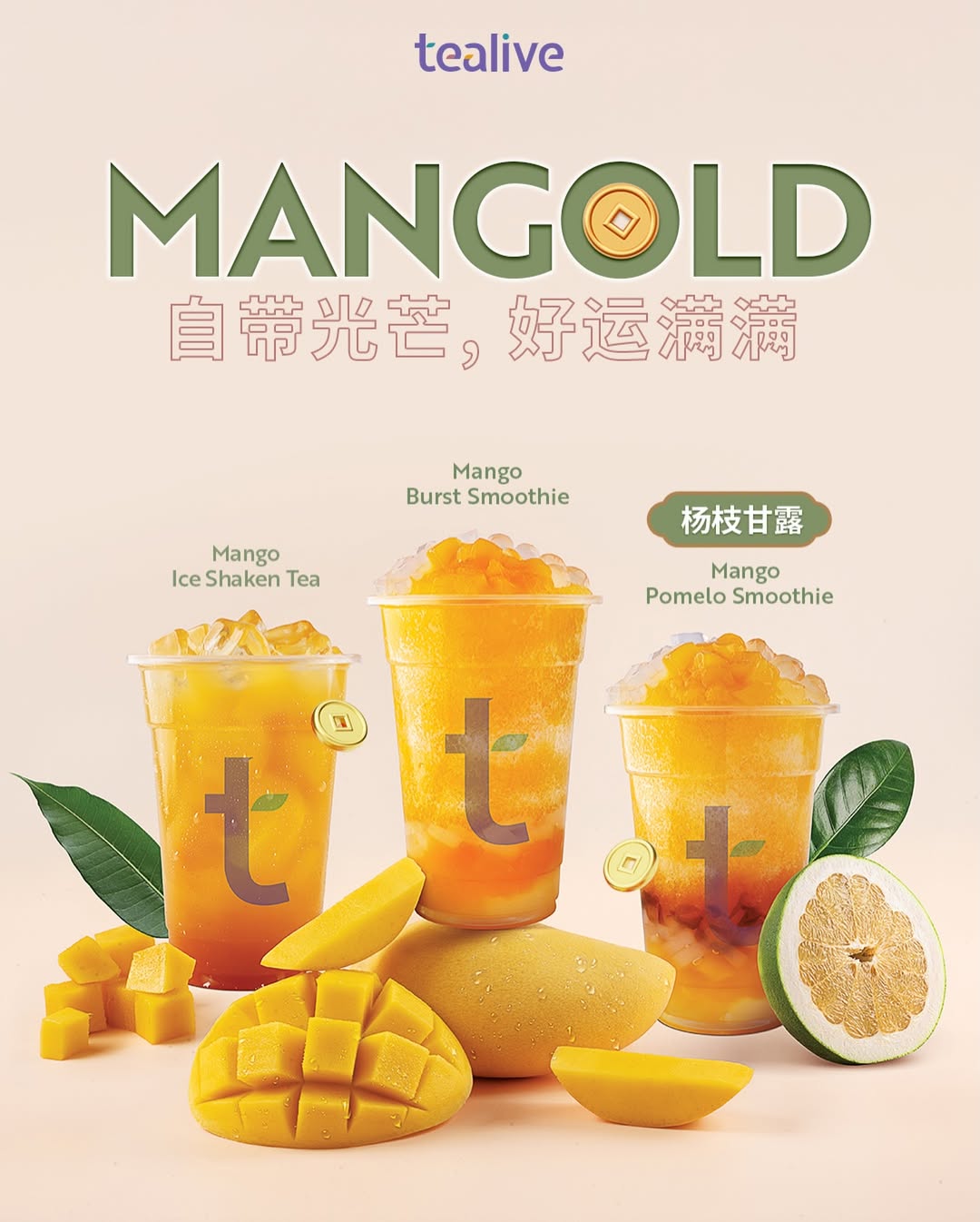 Tealive has chosen mango as the key ingredient for its Chinese New Year drink in 2025. Riding into the Year of the Horse with a touch of gold, the limited‑edition Tealive Mangold lineup includes: