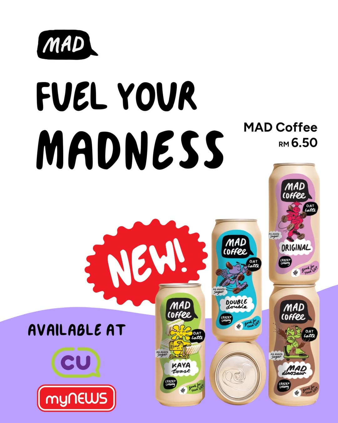 Singapore’s MAD Coffee has launched four ready‑to‑drink (RTD) oat‑based coffee beverages in Malaysia, now available at CU and myNEWS convenience stores.