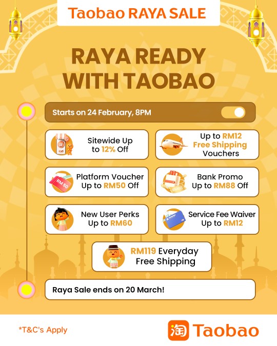 For full details on Taobao Pesta Raya campaign and updates, follow Taobao Malaysia on Facebook, Instagram, and TikTok, or visit the app.