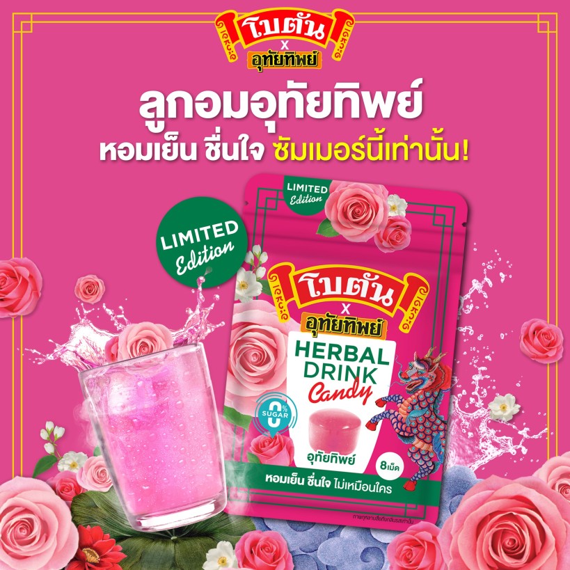 Botan Herbal Candy has partnered with Uthai Thip, the Thai herbal medicine brand behind the famous red tonic drops — a traditional blend of flowers and herbs used to cool the body, quench thirst and soothe mouth ulcers. Botan Herbal Candy is a Thai confectionery product that takes inspiration from traditional herbal remedies and turns them into a sweet, refreshing treat.