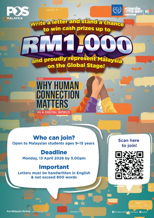 The Grand Prize winner will represent Malaysia in the 55th International Letter-Writing Competition for Young People 2026. This follows a landmark achievement last year, when 14-year-old Claire Chen Ching Yuan from Kuching, Sarawak, secured a prestigious international ‘Special Mention’—proving that Malaysian youth have what it takes to captivate a global audience.