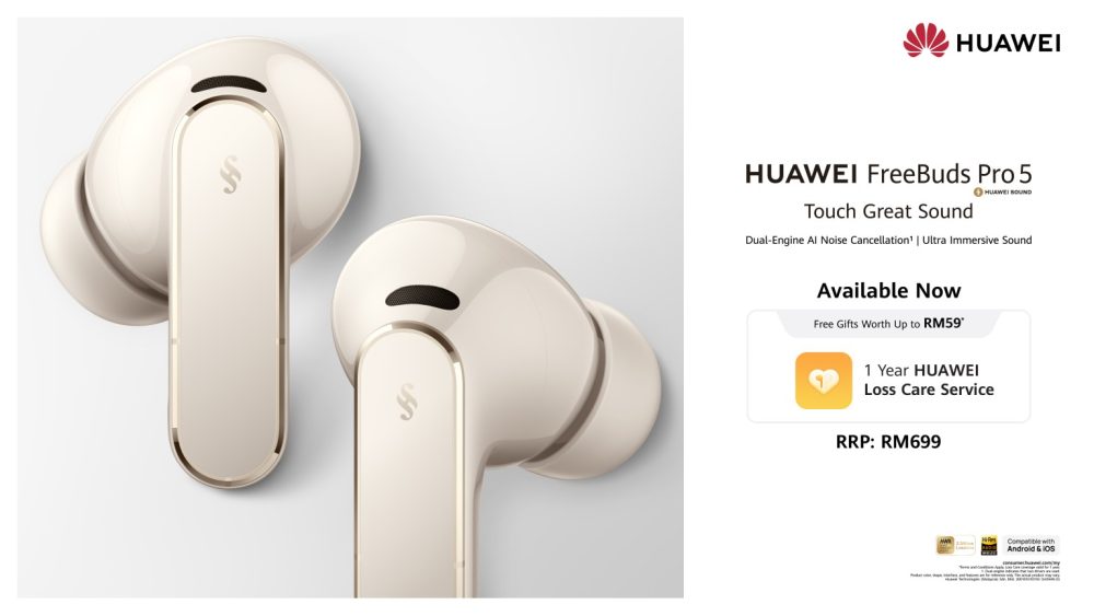 Alongside the HUAWEI Mate 80 Pro, Huawei also introduces new additions to its smart device ecosystem. The HUAWEI FreeBuds Pro 5 brings Huawei’s latest audio innovation with its Dual-Driver Acoustic System, supporting high-resolution lossless audio transmission to deliver richer sound reproduction with deeper bass and clearer high frequencies. Priced at RM699 and now available in Grey, White and Gold, customers will receive one year of Loss Care protection worth RM59 upon purchase.
