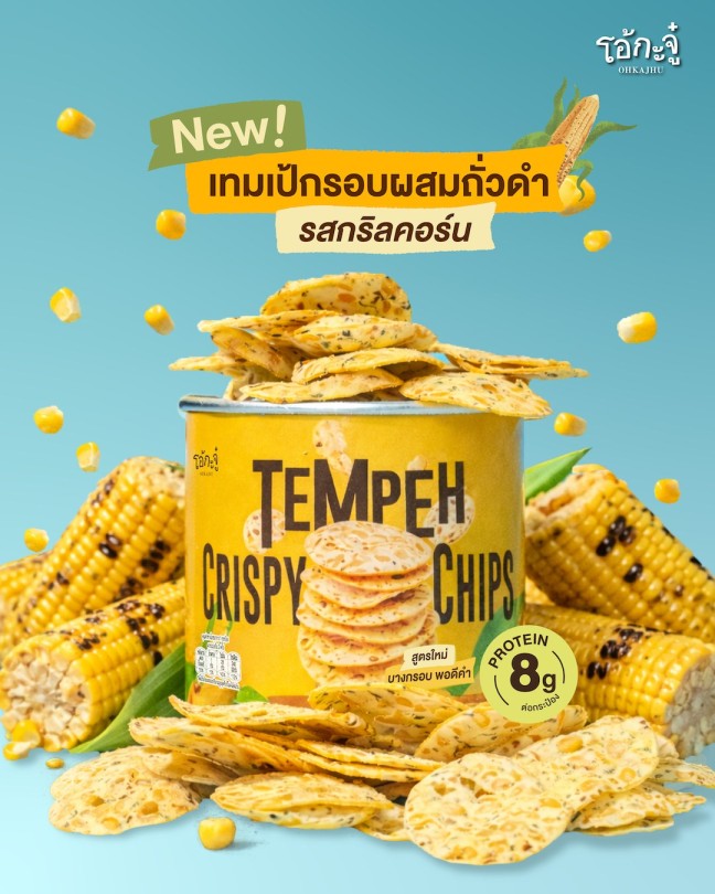 Ohkajhu, Thailand’s beloved farm‑to‑table restaurant chain, has introduced a new grilled corn flavour with black beans to its guilt‑free tempeh snack. Crafted from carefully selected soybeans blended with black beans and fermented for over 48 hours, the tempeh delivers a deep, well‑rounded taste with every bite. Each serving provides 8 grams of protein, is low in sugar, and contains no MSG or preservatives, making it a wholesome choice for mindful snackers.