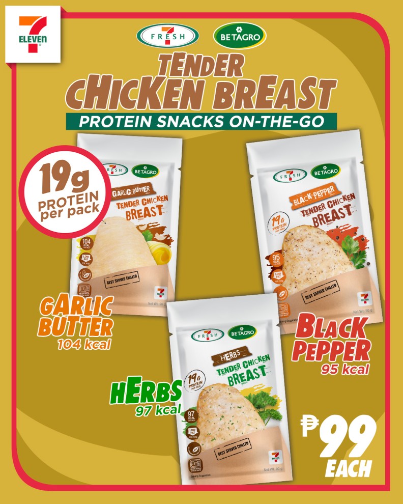 The new 7‑Fresh Tender Chicken Breast, created in collaboration with Thailand’s Betagro, is now available at select 7‑Eleven stores in the Philippines. Each serving contains 19g of protein and fewer than 105 kilocalories, making it an ideal guilt‑free option for only PHP 99.