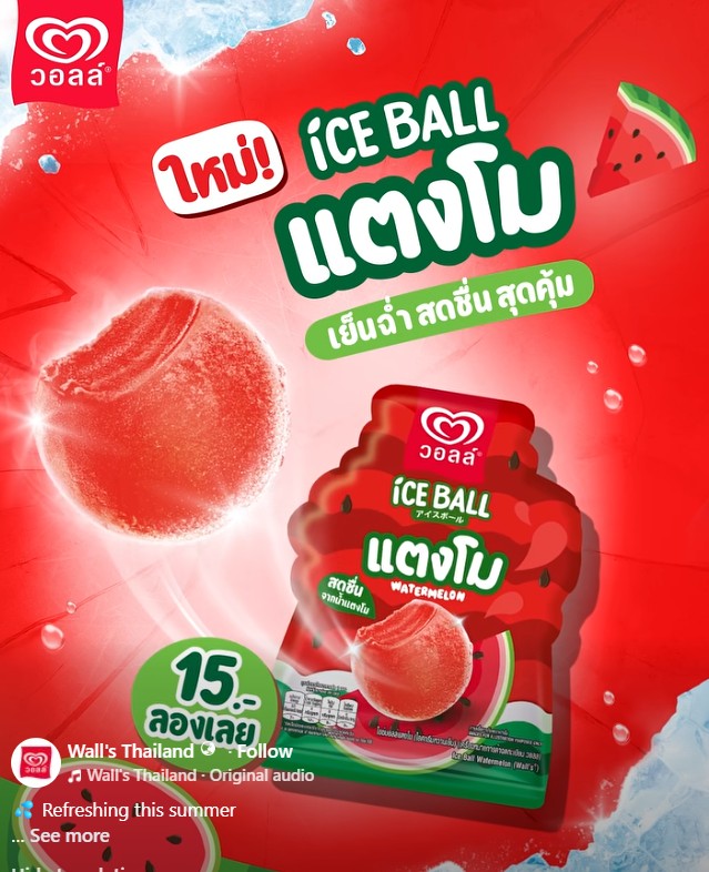 Wall’s Thailand has introduced two refreshing new additions to its popular Ice Ball range — Red Apple and Lemon. This ball‑shaped frozen treat, made with real fruit juice, delivers a burst of natural flavor in every bite.