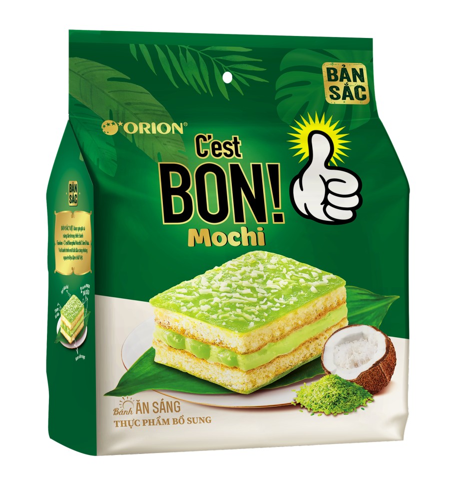 The C’est Bon Cake with Mochi & Coconut Green Rice brings a modern twist to traditional flavors. For the first time, a soft, multi‑layered European‑style cake is crafted with distinctly Vietnamese ingredients — young green rice, pandan leaves, and coconut — delicately blended into a creamy green rice filling and layered within moist sponge.