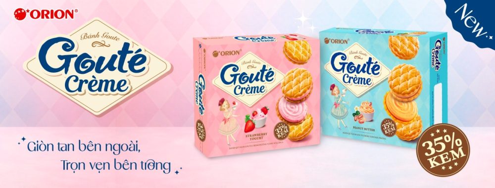 The Gouté Crème Strawberry Yogurt Flavoured Sandwich Cookies, together with Orion Gouté Crème Peanut Butter Flavoured Sandwich Cookies, are recent launches and contain 35% cream.