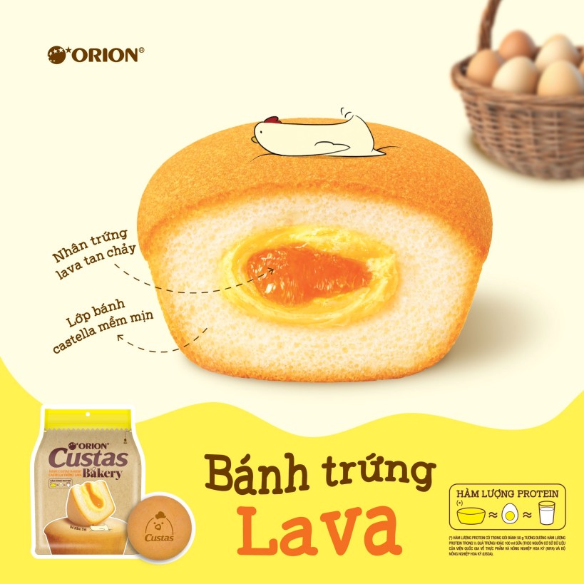 In addition to the Strawberry Collection, Orion Food Vina has introduced Custas Bakery Castella Egg Lava, positioned as a nutrient‑rich and convenient meal replacement for young people and office workers. The product is 2.1 times larger than regular Custas and features an ultra‑soft Castella sponge texture. Its protein content is equivalent to that found in one egg or 100ml of milk.