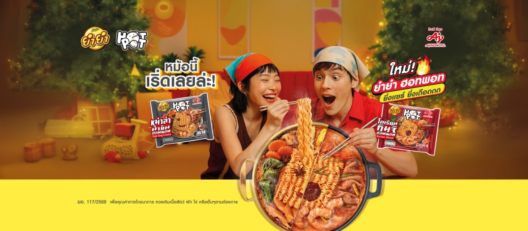 Ajinomoto has recently introduced the Yum Yum Hot Pot instant noodle series in Thailand. Inspired by the popularity of instant noodles in malatang and Korean cuisine, the new range features two bold varieties: Mala Tang Creamy Hot Pot and Korean Kimchi Hot Pot. Both deliver a satisfying, spicy taste and are packed with rich ingredients, offering an experience that feels just like dining at a hot pot restaurant.
