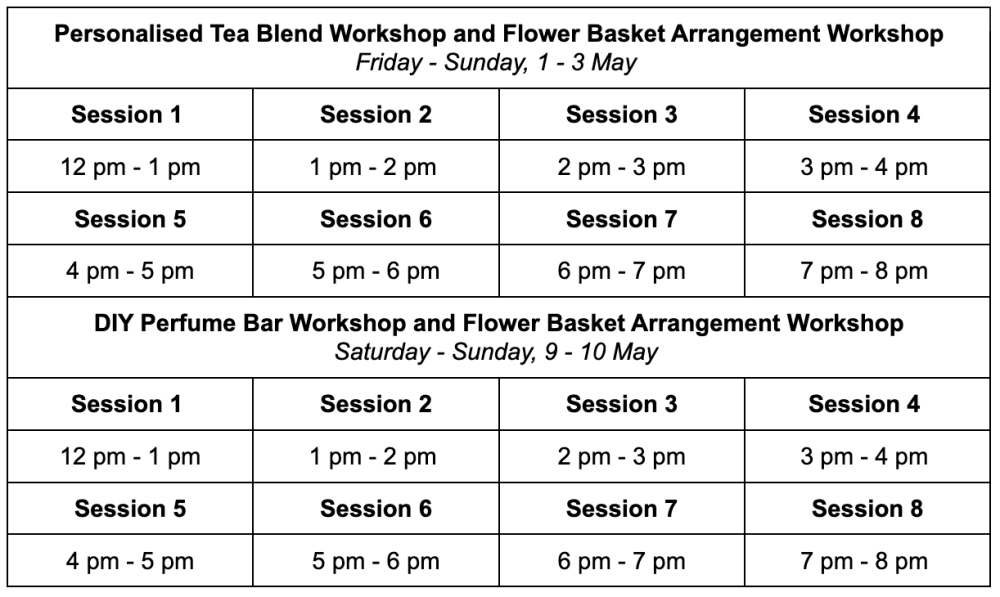 From 1 to 3 May, shoppers can craft their own personalised tea blends, while on 9 and 10 May, they can create their own personalised scents at the DIY Perfume Bar. Across both weekends, visitors can also create their own dried flower basket arrangements — a thoughtful keepsake for mum.