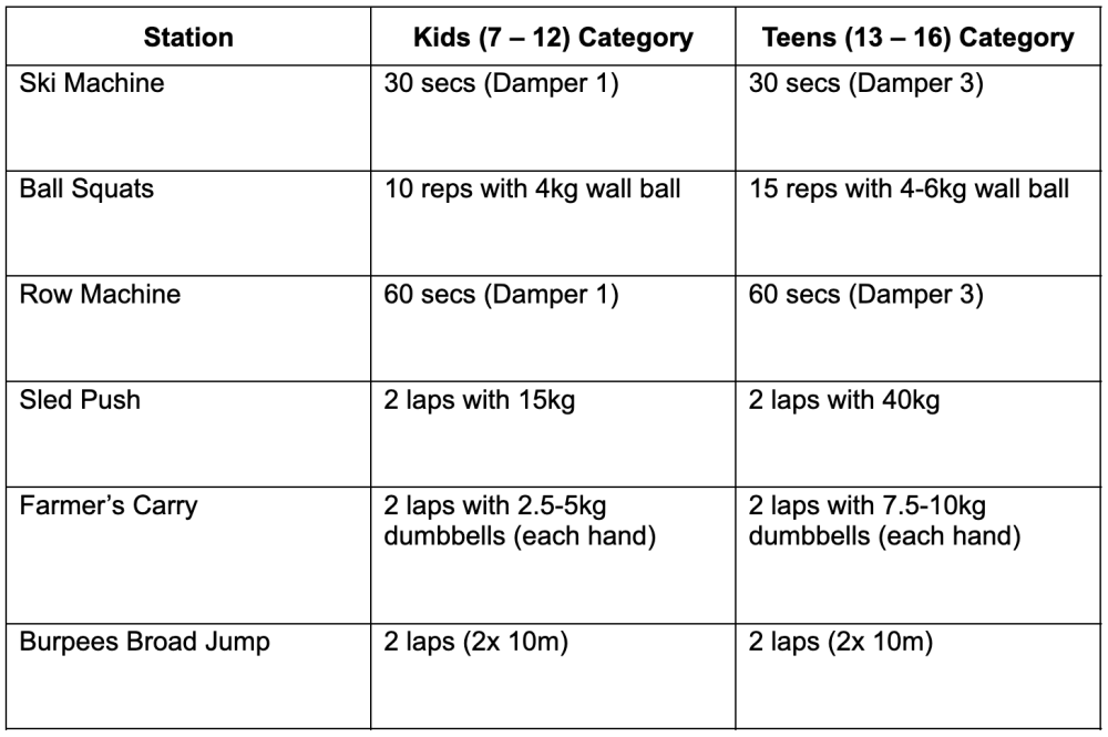 Reps and weights are thoughtfully adapted across both age categories, and each station is supervised by expert coaches from MobKidz by Mobilus, ensuring each station is tough enough to be thrilling, but always safe and achievable. No experience required — all challengers have to do is show up in comfortable sports attire and covered shoes suitable for physical activity, and get ready to rock.
