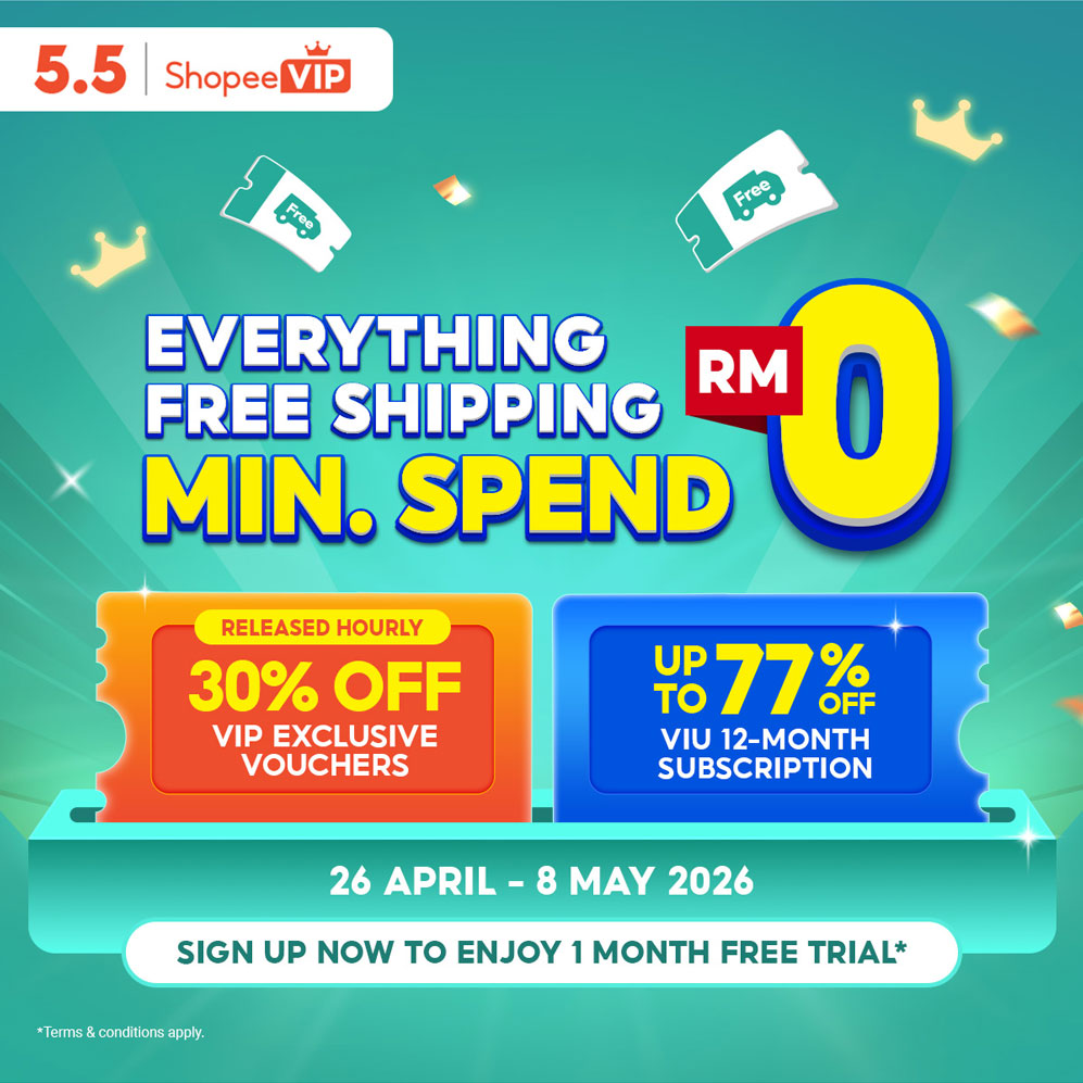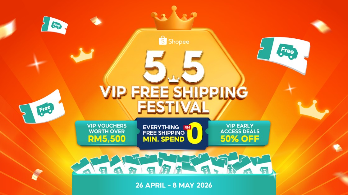 From Everything Free Shipping RM0 Minimum Spend to early access deals at 50% off, stacked vouchers, and exclusive lifestyle perks, the Shopee 5.5 VIP Free Shipping Festival brings greater savings and more ways to benefit for users who shop on Shopee everyday.