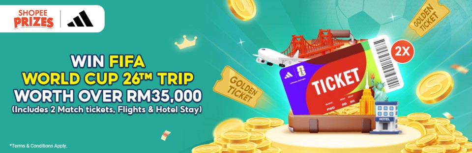 Stand a chance to win a once-in-a-lifetime trip to the FIFA World Cup 2026™ in the United States, in collaboration with adidas. Join the Tap & Win FIFA World Cup 2026™with adidas on the Shopee App to collect golden tickets and boost your chances of winning.